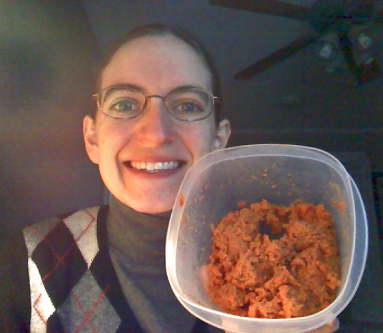Carrot Souffle is one of those recipes that has been in the family forever, but when people first hear the name or look at the mashed carrots, they (sometimes not-so) politely turn their noses up at it. However, if you can get the skeptics to at least try a "no thank you" helping, nine times out of ten they will be back up at the buffet getting a much larger second helping. Be prepared to have the recipe on hand, because people will ask for it. As the child who wanted nothing to do with any cooked vegetable, Carrot Souffle was the huge exception to my self-imposed rule. I wish I had a beautiful photo of it freshly out of the oven, but I never think to take one, so what you're left with is the leftover picture - literally.
